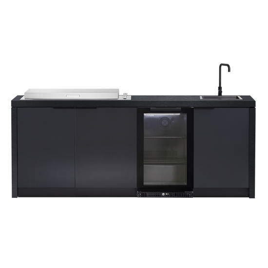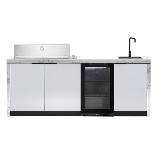 Featuring the BeefEater Signature Proline 6-Burner Built-In BBQ, with the option of a Roasting Hood or Flat Lid, this weatherproof outdoor kitchen is suitable for any alfresco space. Complete with a sink and tap and your choice of additional storage or single-door fridge, the Cabinex Minimal Kitchen caters to all kinds of areas.