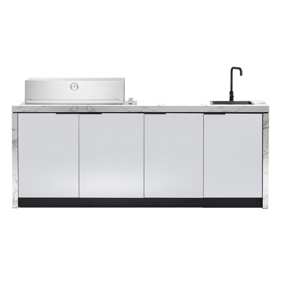 Sleek and sophisticated; the Cabinex Minimal Outdoor Kitchen is raring to be the centre point of your alfresco space. Meticulously designed to seamlessly integrate the BeefEater Proline 6-Burner BBQ, this outdoor kitchen is the perfect combination of functionality and elegance.