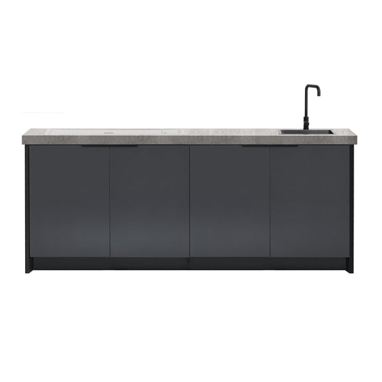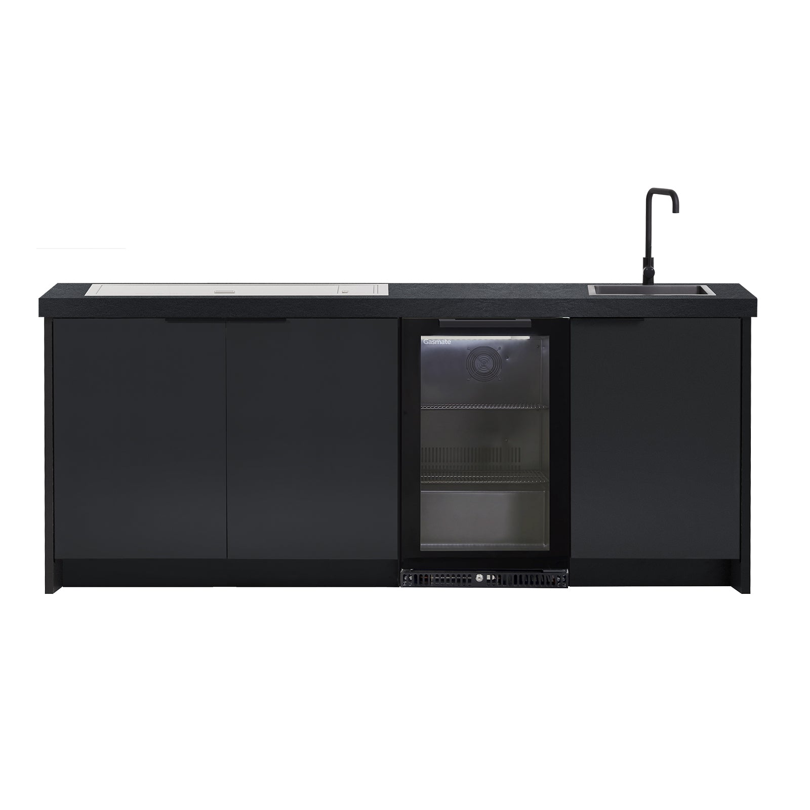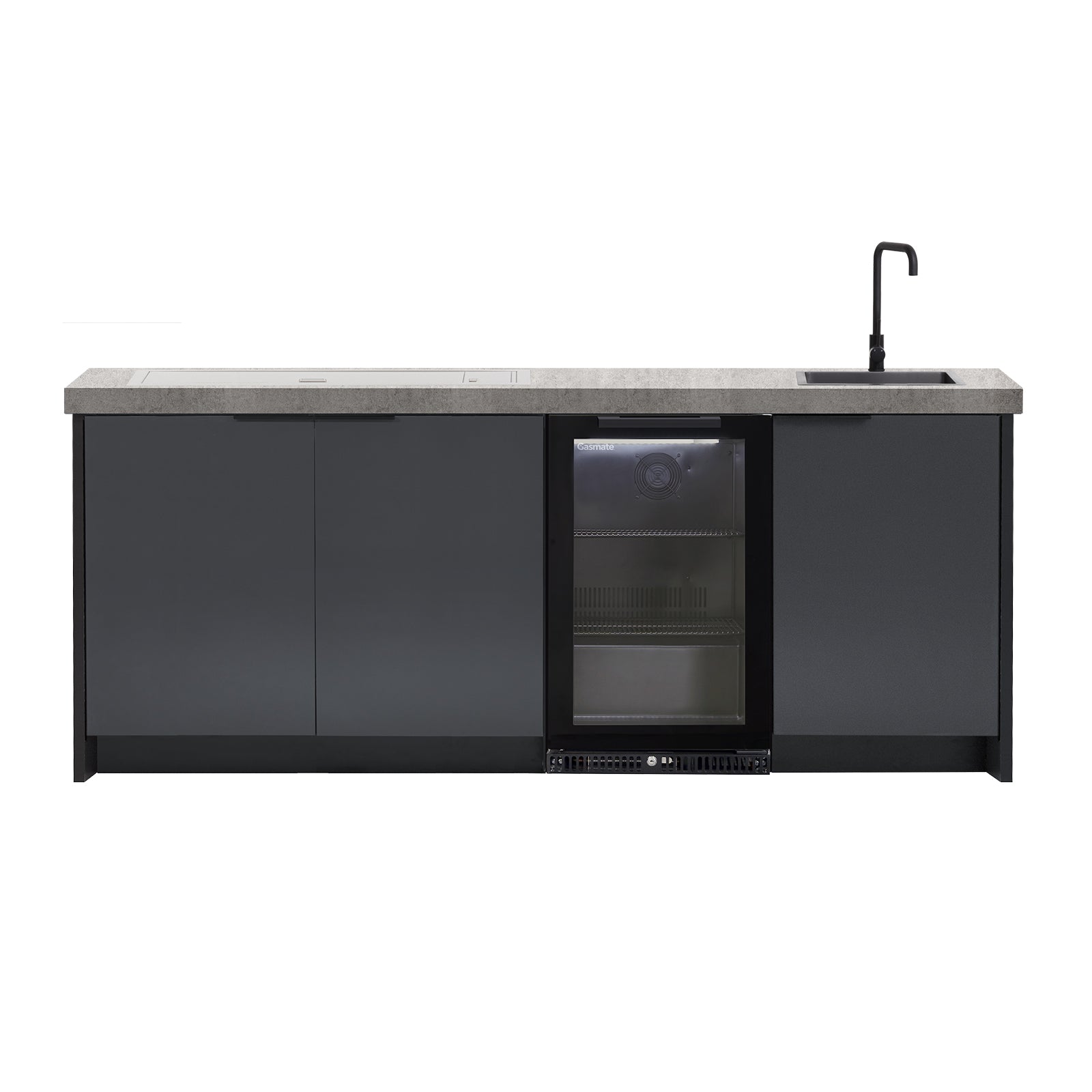 Featuring the Gasmate Soho 4 Burner Drop In BBQ with flush mount flat lid, this weatherproof outdoor kitchen is suitable for any alfresco space. Complete with a sink and tap and your choice of additional storage or single-door fridge, the Cabinex Minimal Kitchen caters to all kinds of areas.