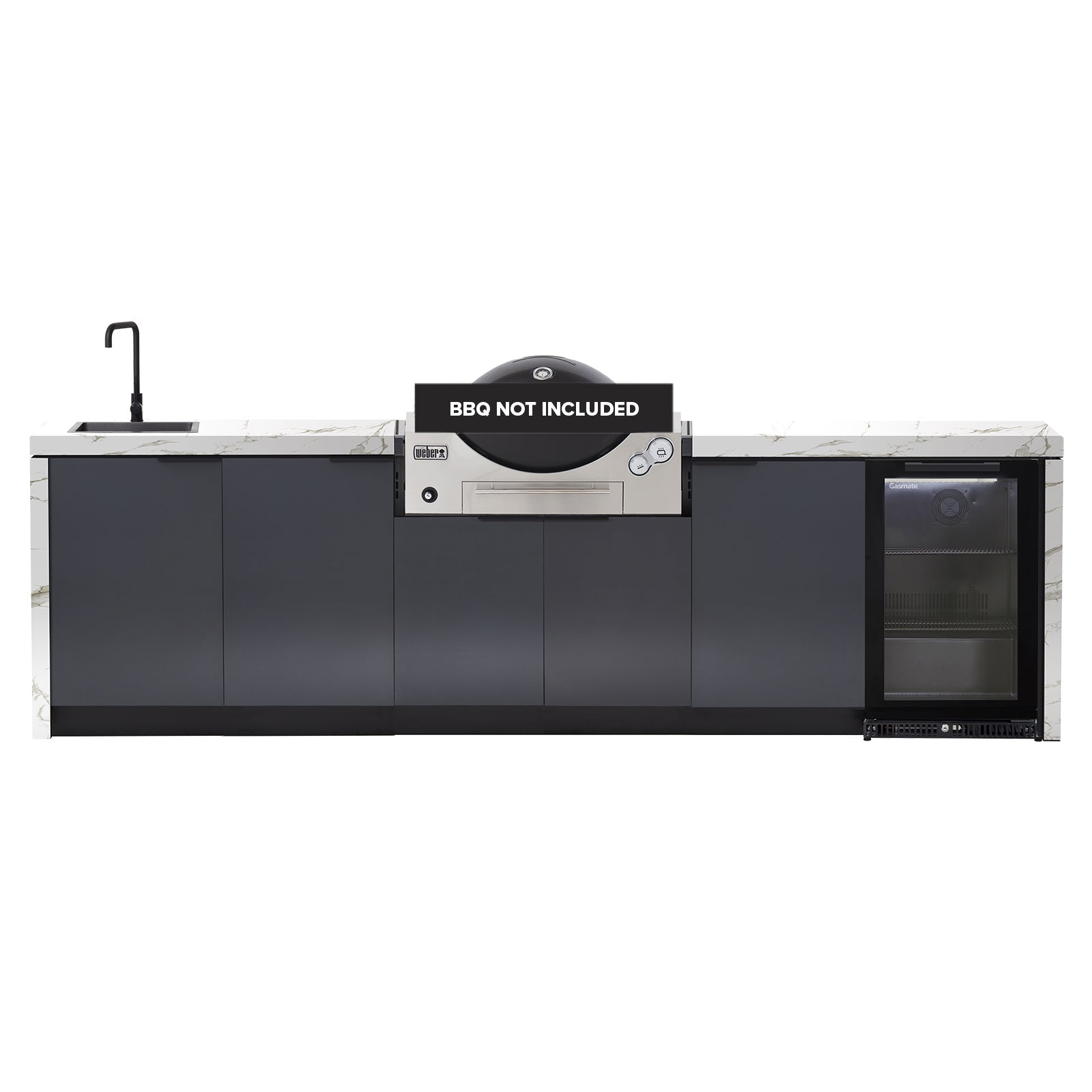 This package includes a two single modules on either side of the BBQ to help make the most of your area. The fridge and sink can be reconfigured to sit on either side of the kitchen to better suit your space.