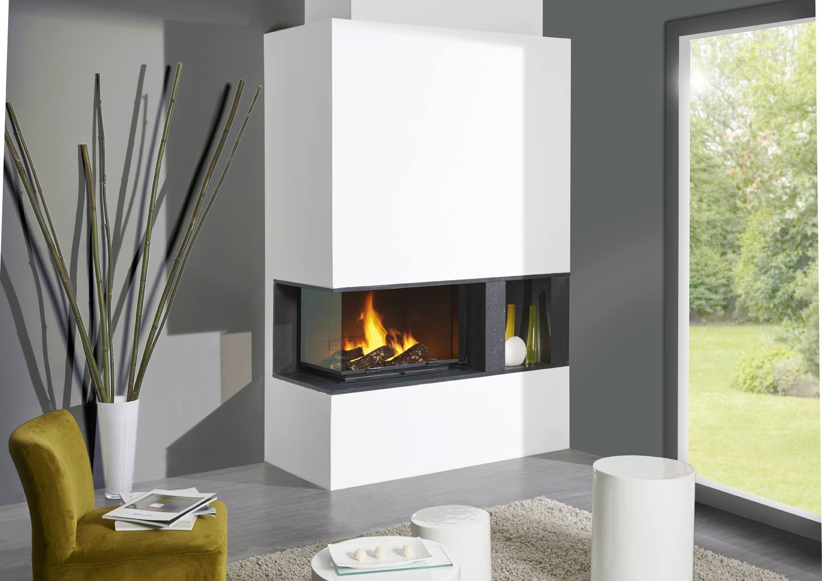 The Cheminees Philippe Radiante 747 2V PR Wood Heater corner window dual opening door encapsulates the modern, elegant, clean lines of Cheminees Philippe's most popular fireboxes with a modern twist.