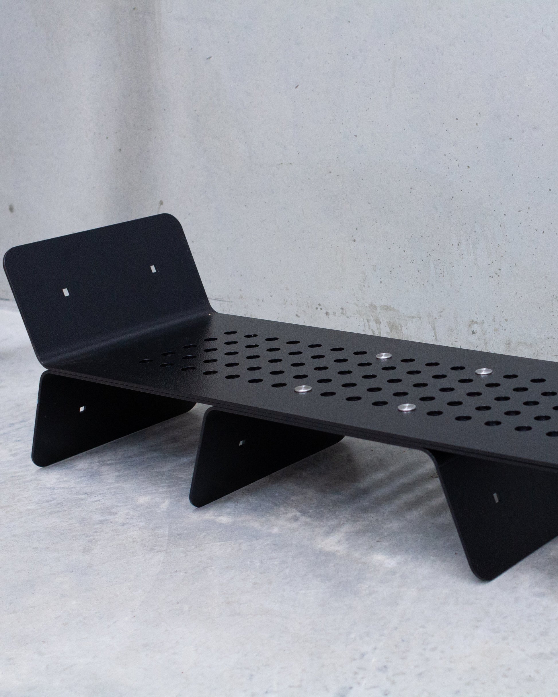 Float is made from 4mm steel and powder coated in ripple black for a tough durable finish. It comes with all the fixings required including our signature Billy bolts which make it clean and visually pop.